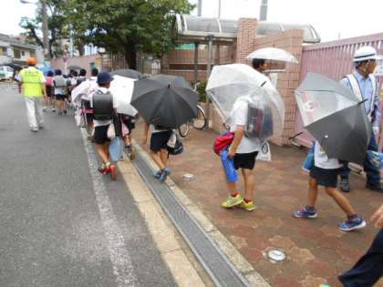 話し合いの終了後は、きちんと班ごとに並んで集団下校をしました。