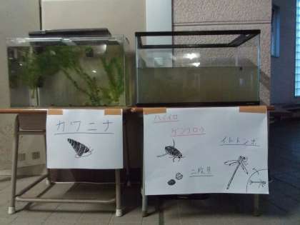 ハイイロゲンゴロウとヤゴは、玄関の水槽の中にいます。