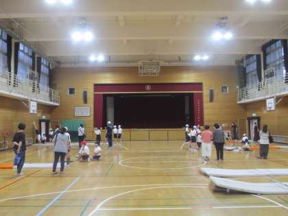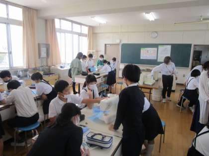 5年生は家庭科と体育科の学習に取り組みました。家庭科はミシンの使い方、体育科はマット運動の学習でした。