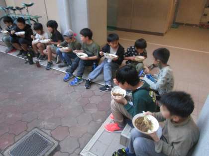 グループごとにカレーライスを食べました。どのグループもみんな美味しくいただくことができました。たくさんおかわりしている子どもの姿もありました。