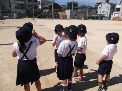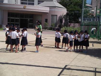 1年生の子ども達「がシャボン玉遊び」をしていました。