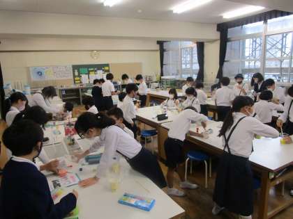 科学クラブは、前回うまく作れなかったスライム作りに再度チャレンジしていました。