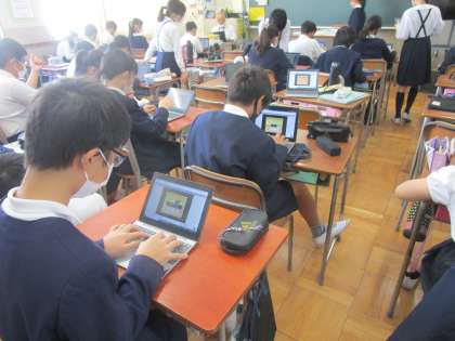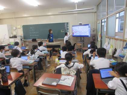 4年生と6年生の様子です。4年生は理科の学習でタブレットの発表ノートの機能を使って学習していました。子どもたちの考えが一覧で確認できます。6年生はキーボードを早く打つことができるようにアプリを使って練習していました。ゲーム感覚で楽しみながら練習できています。