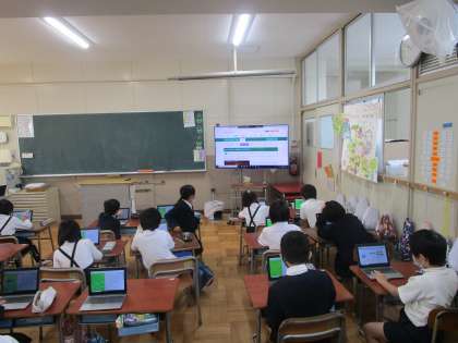 「ビスケット」というソフトを使ってプログラミング学習に取り組んでいました。子どもたちはとても慣れてきています。