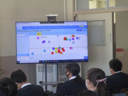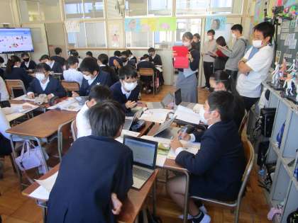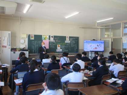 6年生の様子です。道徳科の研究授業がありました。「ロレンゾの友達」という教材で友情関係の構築について学習しました。タブレットでポジショニングという機能を活用し、友だちの考えを一覧で見ることができ、自分の立場を明確にして意見を述べていました。6年生らしい授業の様子でした。