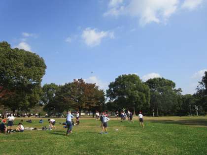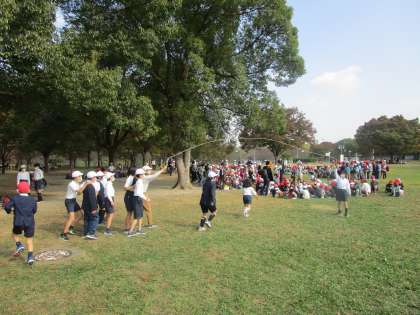 お弁当を食べた後は、芝生の大広場で子どもたちは思う存分遊んでいました。長なわとびや紙飛行機を飛ばしている姿もありました。