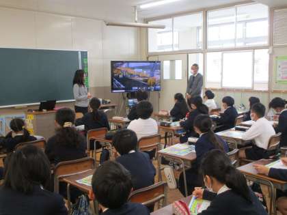 11月30日(水)5年生は社会科の学習でヤマト運輸さんにご協力をいただき、オンライン社会見学を行いました。2年前から本校がヤマト運輸さんと一緒に取り組んでいる貴重な取り組みです。子どもたちは教室にいながら、関西ゲートウエイという大きな物流倉庫内で荷物がどのように種分けされているかを学習することができました。年々見学内容が充実しています。