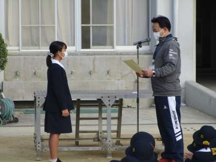 12月5日(月)の児童朝会では、表彰状をいただいた児童の紹介をしました。