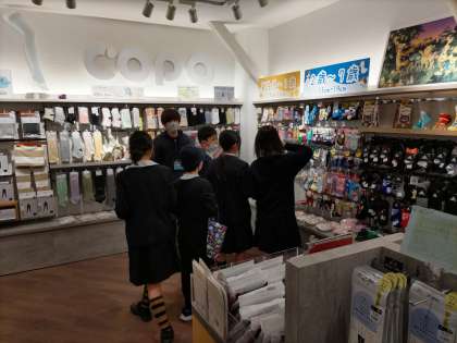 店員さんのアドバイスを聞いてメモを取りながら話し合ったり、買う人の立場に立って考えながら話し合ったりしながら、商品を決めていっていました。