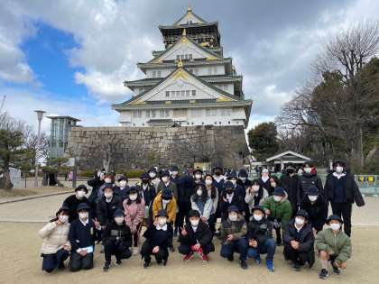 天守閣を背景に学級写真を撮りました。卒業に向けて一つ思い出が増えました。