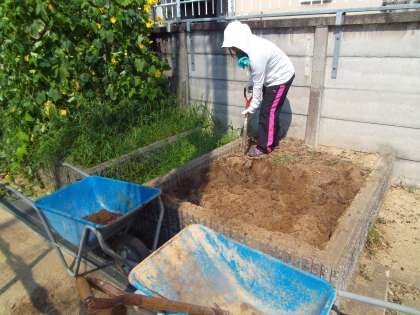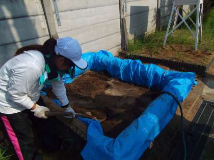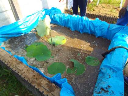 7月29日(水)、職員作業でレンコン畑を作りました。