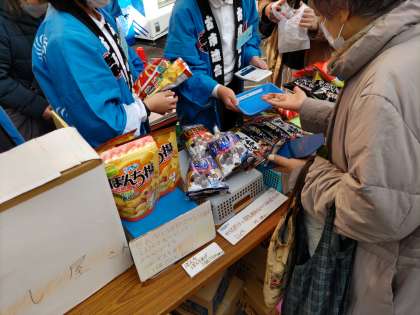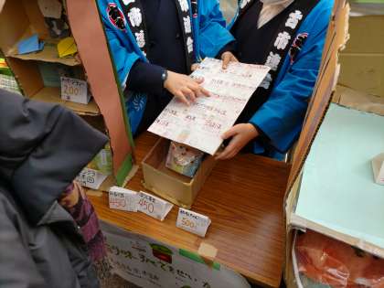 おかし屋さんです。こちらも、商品の前に説明を書いたものを置き、販売していました。