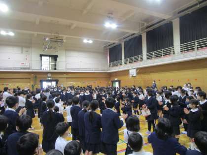 5時間目は6年生の卒業をお祝いして「6年生お疲れ様 中学校でもがんばってね集会」を行いました。3年ぶりに講堂に集まり、実施することができました。計画委員会、代表委員会の子どもたちが中心になって運営してくれました。お祝い集会の様子を紹介します。