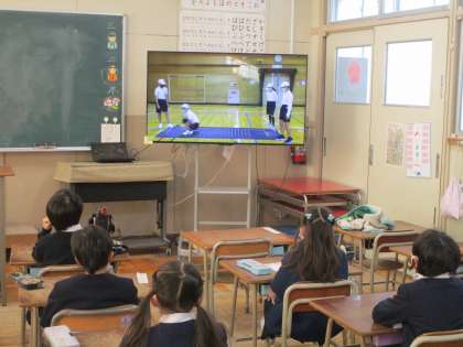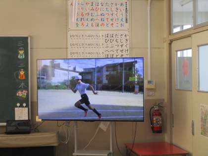 児童集会の時間に運動委員会のビデオ発表がありました。スポーツテストの種目にあります「50m走」「立ち幅跳び」「ソフトボール投げ」の記録向上のためのポイントをわかりやすく解説してくれました。実際の動きを撮影し、テロップを挿入して編集されていましたので大変わかりやすかったです。