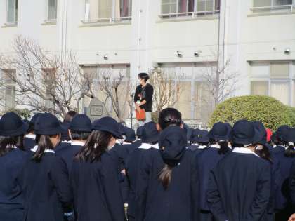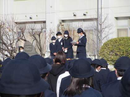 児童朝会の様子です。放送委員会の児童から連絡がありました。3月に入り、朝会の時間帯も少し暖かくなってきました。春の訪れを感じます。