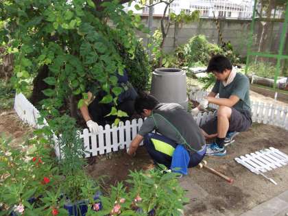 「緑の小道周辺」にある「枯葉積み」エリアの柵の修繕です。