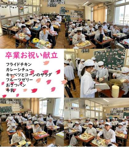 みんな、いい表情で卒業お祝い献立の給食を食べていました。