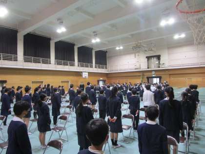 よびかけの場面では、6年生が5年生の方を向きます。迫力ある6年生の姿をみて、5年生の子どもたちは、来年は自分たちの番であることを自覚できたと思います。予行終了後は、6年生から5年生にお礼を伝える場面がありました。このような光景が小学校には大切であると思います。