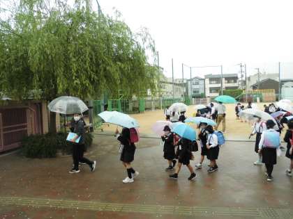 高学年児童が1年生を迎えに行ったり、誘導したりするなど、安全な登下校はもちろんのこと、とても大切な異学年交流の場にもなっています。その頼もしい姿を、みんなが見ています。ありがとう!