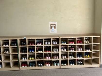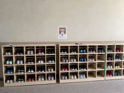 4年生は学年で『靴箱に直す靴をそろえること』に取り組んでいます。休み時間の終わりも早く教室に戻ろうと急ぎがちですが、そんな時ほど靴のかかとをそろえて片付けることでこれから始まる授業に対しての気持ちも整えることができます。4年生全員で取り組むことで、学校の手本にもなれるよう頑張っています。