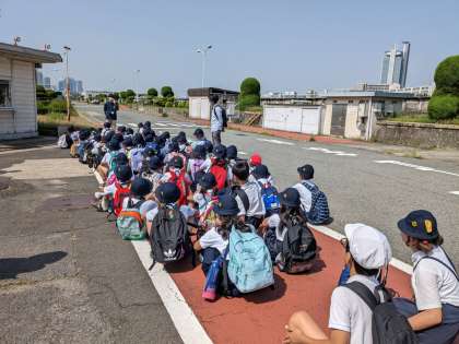 4年生は8時35分頃に学校を出発し、無事、柴島浄水場に着き、真剣に説明を聞いています。