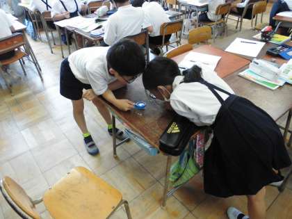 3年生が理科の授業で、葉の観察をしていました。ルーペを使って、気になる部分を一生懸命観察しています。表面と裏面の違いを見つけることができ、うれしそうに報告してくれました。それぞれが見つけた小さな発見を、机を合わせたグループの仲間と共有することで、大きな知識へと結び付けていきます。以前は当たり前の光景ではありましたが、本当に大切な瞬間だと改めて思います。