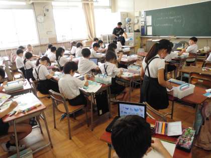 4年生が図画工作科の学習で取り組んでいた水彩画の紫陽花は、まさに梅雨の時期ならではもので、その淡い色彩を水彩絵の具で見事に表現していました。それは紫陽花だけでなく雨の水滴までも表現しているようで、雨の日も素敵だと思えます。