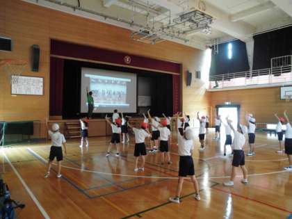 児童の発達段階を考えながら、指導の仕方を工夫しています。児童にとって身近な動画を活用するなどしていますが、1人1人の状況を見ながら丁寧に対応していきたいと思います。団体演技は体育科の表現運動領域の内容の実践です。各学年の表現したいテーマを感じ取ってもらえるよう、がんばってほしいですね。