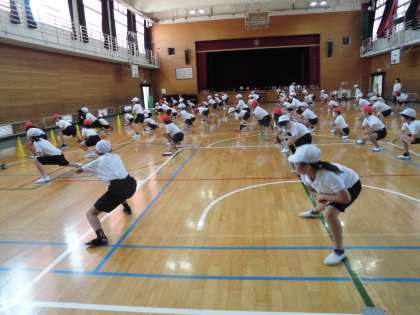 5年生は運動会の団体演技で、よさこいソーランに取り組んでいます。一通りの振り付けを覚え、さらにレベルアップするために、細部を突き詰めていきます。腰の入った低い姿勢や指先まで意識された手の使い方など、まだまだこれからですが一生懸命に向き合って、素晴らしいよさこいソーランを仕上げてくると期待しています。
