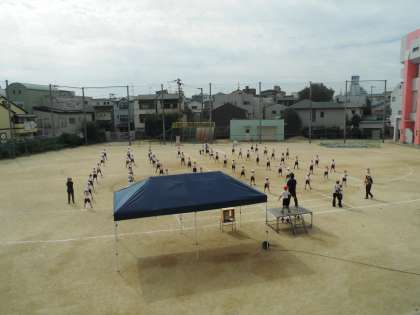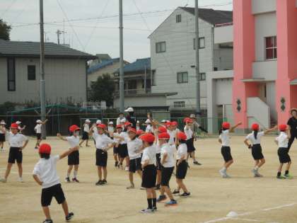 10月に入り、運動会に向けた練習を運動場で行うことが増えてきました。体育館などの屋内で、丁寧に演技を覚えるだけとは違って、空間が広がった運動場は、位置関係を把握したりするのも大変で、広い空間は集中するのも難しい一面もあります。そんな中、子どもたちのやる気は満々で、元気いっぱいに練習しています。本番をお楽しみに!
