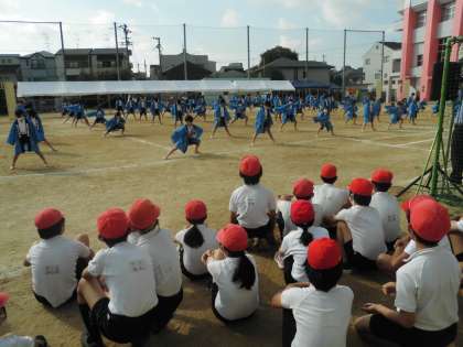 運動会に向けた練習の最終日です。団体演技の最終リハーサルを低・中・高学年ごとにお互いに見合います。古市小学校では、コロナ架以前からお互いに見合う機会をもっていたそうです。本番は後ろの児童席から見る演技を、前方の観覧席から見て、終わった後にお互いに感想を言い合うことは、とてもよい機会であると思います。こうやって、大切なものが受け継がれていくのだと思います。