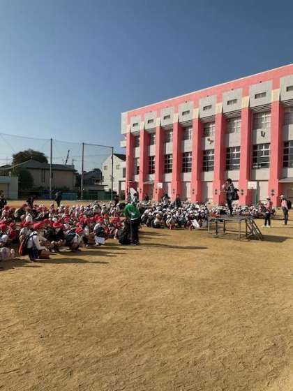 快晴のお天気の下、本日は全校児童による校外オリエンテーリングです。