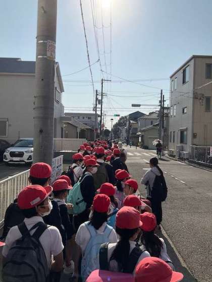 6年生を中心に、異学年のグループでの行動です。安全に気をつけながら行ってきます!