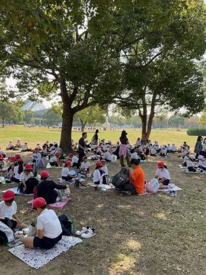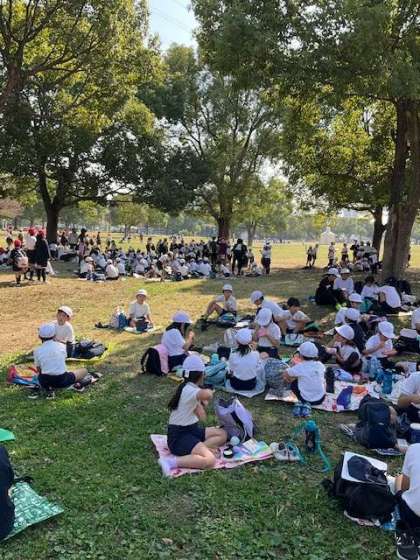 お楽しみのお弁当も、たてわり班ごとに食べます。