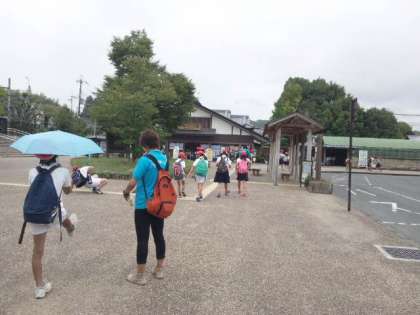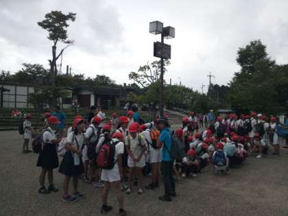 5年生は飛鳥へ遠足に出かけました。地下鉄と近鉄電車合わせて約1時間30分かかって飛鳥駅に着きました。休憩の後、スタート地点の飛鳥駅からオリエンテ−リングに出発です。地図を見ながらだったのですが、最初のグル−プにつられて全員道を間違うというハプニングがあったり、バッタやカエルに気をとられたり(景色の美しさに感動している子ももちろんいました。)で最後のグル−プがゴ−ルに到着したのが予定を大幅に遅れ12時30分でした。