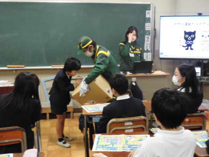 本日は5年生の各教室で、ヤマト運輸オンライン社会見学が行われました。一人ずつ配られたすごろくのシートを使って、宅急便が届くまでの様子を学習しました。荷物が集まる関西ゲートウェイといわれる場所と教室をオンラインでつなぎ、現地の様子を説明いただきながら見学しました。移動の時間も必要なく、現地の様子も近くからの映像で見やすく、素晴らしいプログラムだと感じました。子どもたちも大変意欲的に取り組み、積極的に質問していました。