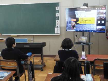 今日の5時間目に、5年生は各教室で「日産オンライン社会見学」を、6年生は多目的室で「くすりの正しい使い方講座」を受けていました。それぞれの関係する方から直接お話を聞く貴重な機会です。子どもたちは、真剣な表情で聞き入っていました。