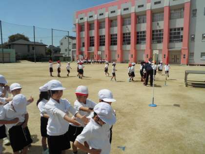 気持ちの良い天気のもと、1年生が体育科の学習で、集合・整列をがんばっていました。先輩たちは当たり前のように行っている整列ですが、まだまだ真っ直ぐに並ぶのも一苦労です。それでも一生懸命に指示を聞きながら、声を掛け合って並ぶ姿は意欲にあふれていました。全校朝会が楽しみですね。