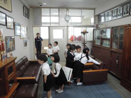 本日の1・2時間目に、2年生が1年生を連れて学校探検を行いました。校内のいろいろな場所を回って、丁寧な言葉で説明をしていました。1年生の手を引きながら、優しい笑顔で接しています。入学式の演技もそうでしたが、こういった機会に2年生の着実な成長を感じます。素敵な瞬間です。