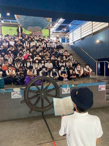 無事、海洋センターに到着しました。少しバス酔いした児童がいましたが、開所式では、しっかりと話を聞くことができました。着替えて、午後の活動に備えます。