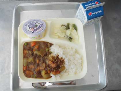 2学期が始まり、今日から給食です。取りに行く前から、いいにおいが漂ってきます。1年生も、すっかり給食準備に慣れて一番乗りでした。今日の献立はビーフカレーライス!給食を楽しみにしていた子どもたちの笑顔も、より一層輝いているようです。みんなで食べる給食は最高ですね!