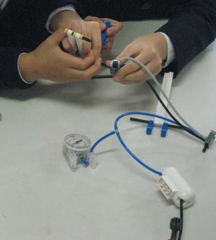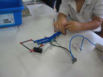 子どもたちは、自分の腕のつくりと運動を意識しながら、