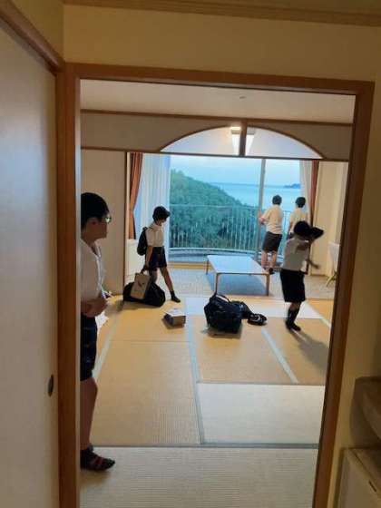 素敵なお部屋に大興奮ですが、すぐに避難訓練を行いました。