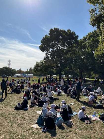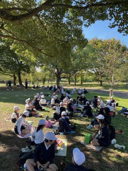 たてわり班ごとに集まって食べるお弁当は、格別ですね。