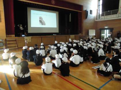 今朝は、全校朝会と隔週で行われる児童集会を、集会委員が中心となって実施しました。6年生が1年生を迎えに行き、講堂にたてわり班ごとに声をかけ合いながら集合・整列することができました。スクリーンにキャラクターの一部を映し出すキャラクタークイズで、朝から楽しい雰囲気で学校生活のスタートです。
