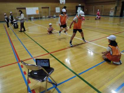 3年生体育科の授業で、動画を撮って活用していました。多様な動きをつくる運動において、自分がどう動いているかを見ることができることは、とても有意義な活動です。グループでの話し合いも活性化し、とても意欲的に取り組めていました。