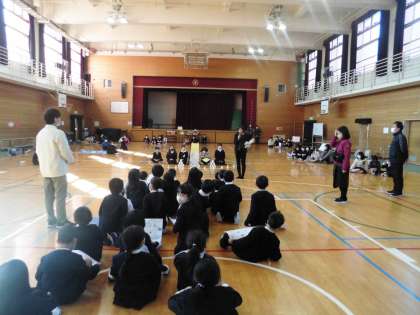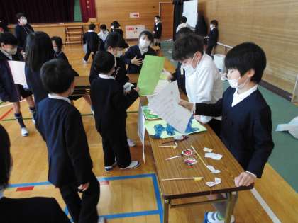 本日の2・3時間目に、2年生が1年生を招いて「おもちゃまつり」を開催していました。2年生が作ったおもちゃを使って、1年生がお客さんのように楽しみます。2年生は遊び方の説明やサポートなど、優しく教えてあげながら、楽しませてくれていました。そんな1年生の笑顔を見ながら、2年生にも笑顔が広がっていました。