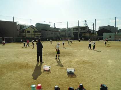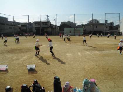 冷え込みが厳しいこの頃ですが、児童は元気に運動場で体育科の学習に取り組んでいました。こんな寒い日にぴったりな鬼ごっこで、体を温めています。鬼ごっこは、小学校体育の中で心と体をスイッチオンにする活動として、とてもポピュラーなものです。こういった運動遊びの繰り返しから、児童はルールを守って楽しむことや、運動すると体が温まることなどを学習していきます。
