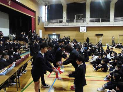 最後に、6年生から合奏やプレゼントが送られました。1〜5年生の思いに応えるような気持ちのこもった演奏でした。今日この時間が、一人ひとりにとっての温かい思い出となり、励みになることを願っています。