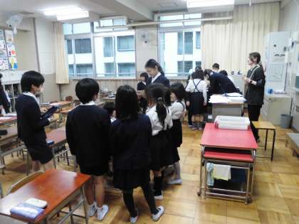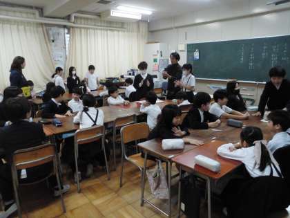 2時間目に、縦割り班編成を行いました。今年度、少し長くなった休み時間を活用した「ゆうゆうタイム(縦割り班遊び)」や全校オリエンテーリングなどで一緒に過ごす仲間です。それぞれ自己紹介をしたり、並び方を確かめたりして、今後の活動に備えました。どの教室も和気あいあいとした雰囲気の中、異学年交流が充実していくことを期待せずにはおれません。よく遊び、よく学べ!